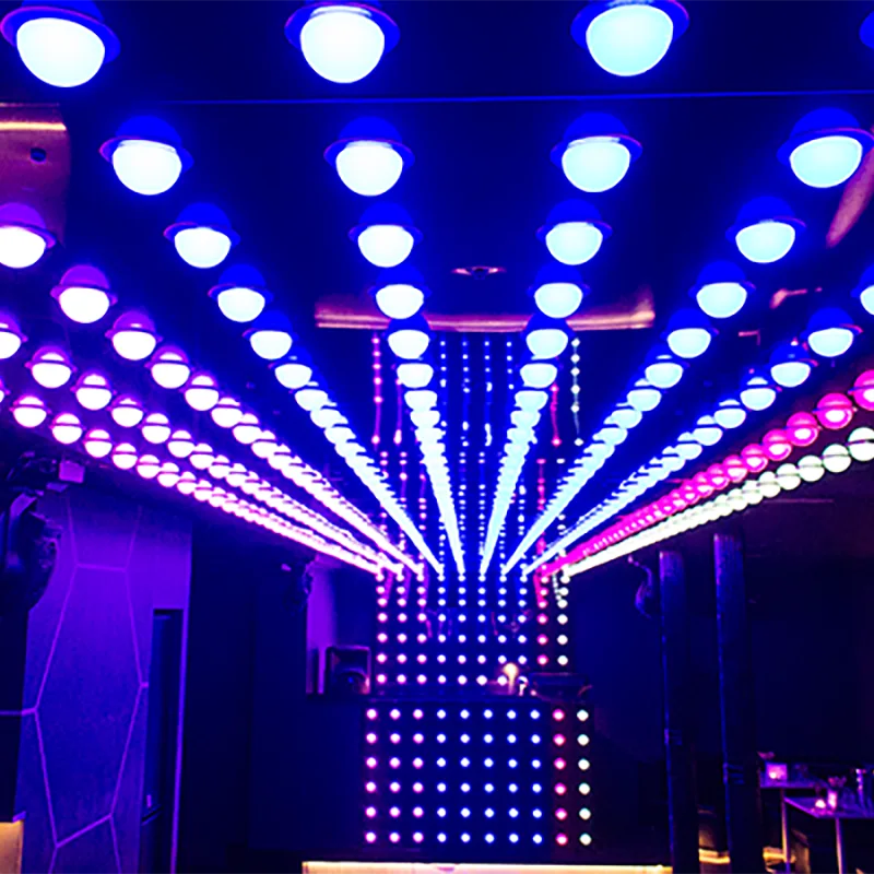 Kiểm soát pixel độc lập: Mỗi bộ phận của Đèn trần Pixel LED sân khấu hoạt động như một điểm ảnh độc lập. Khi kết hợp với phần mềm chiếu sáng chuyên nghiệp, nó cho phép tạo ra các hiệu ứng hình ảnh không gian 3D cực kỳ phức tạp.
